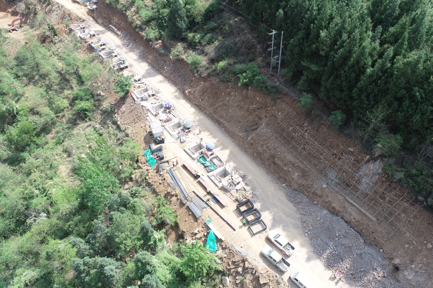 截至目前,高坑口項目已完成路基工程土石方開挖39%,混凝土擋防工程26%,邊溝及排水溝4%,涵洞完成6道,橋梁下部結構完成20%。李家壩隧道掌子面實現貫通,完成仰拱272m、路面基層222m、二次襯砌486m,隧道工程共完成97.8%。